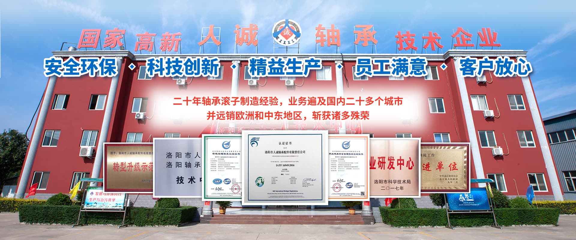 洛陽(yáng)市人誠(chéng)軸承配件有限責(zé)任公司成立于2003年,2015年由洛陽(yáng)搬遷至孟津循環(huán)經(jīng)濟(jì)區(qū)送莊鎮(zhèn)梁新路,占地60畝,建筑面積20000余平方米。公司專(zhuān)注生產(chǎn)高精圓錐軸承滾子,可根據(jù)客戶(hù)需求研發(fā)及來(lái)樣加工,年產(chǎn)精品滾子4億粒?! ∥覀兪冀K堅(jiān)持“安全環(huán)保、科技創(chuàng)新、精益生產(chǎn)、員工滿(mǎn)意、客戶(hù)放心”的經(jīng)營(yíng)理念。先后與河南科技大學(xué)、洛陽(yáng)師范學(xué)院、方智測(cè)控合作,并與國(guó)家洛陽(yáng)軸承研究所聯(lián)合成立“技術(shù)中心”,建立了良好的產(chǎn)學(xué)研合作機(jī)制,為公司的創(chuàng)新發(fā)展打下了堅(jiān)實(shí)的基礎(chǔ)?! ?018年公司被認(rèn)定為國(guó)家高新 技術(shù)企業(yè),通過(guò)了IATF16949:2016質(zhì)量管理體系、環(huán)境管理體系、職業(yè)健康安全管理體系、知識(shí)產(chǎn)權(quán)管理體系等多項(xiàng)認(rèn)證。擁有完善的檢測(cè)手段,先進(jìn)的工藝,穩(wěn)定的設(shè)備,優(yōu)良的服務(wù)。公司董事長(zhǎng)葉會(huì)卿為洛陽(yáng)市工商聯(lián)副主席,洛陽(yáng)市軸承滾子行業(yè)協(xié)會(huì)會(huì)長(zhǎng),法人李?lèi)?ài)芳女士從事軸承滾子制造30余年,積累了豐富的生產(chǎn)管理經(jīng)驗(yàn),誠(chéng)實(shí)守信、務(wù)實(shí)、合作、共贏(yíng)的作風(fēng)深受業(yè)界好評(píng)。